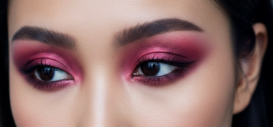 Keep the shimmer contained. This isn’t a glossy lid look. The shimmer should catch light in targeted spots, not cover the berry base you built.